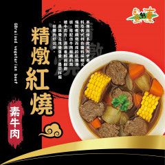 內容物:水、蔬植牛肉片((水,大豆蛋白(非基因改造)、小麥蛋白、棕櫚油、香菇、食鹽、玉米澱粉、蔗糖、可可粉、麥芽糊精、酵母抽出物、南瓜、白胡椒粒、馬鈴薯澱粉、白蘿蔔萃取物、糊精、高麗菜抽出物、樹薯澱粉、大豆卵磷脂。食品添加物: 羥丙基磷酸二澱粉、甲基纖維素、香料、DL-胺基丙酸、L-麩酸鈉、5'-次黃嘌呤核苷磷酸二鈉、5'-鳥嘌呤核苷磷酸二鈉、D-山梨醇液70%、琥珀酸二鈉、抗氧化劑(混合濃縮生育醇)、胺基乙酸、二氧化矽)),,白蘿蔔,紅蘿蔔,玉米,番茄碎片、素紅燒湯底((鮮菇高湯(黑豆發酵液、水、鹽、酵母抽出物、香菇、杏鮑菇、猴頭菇、乾昆布)、藥膳湯粉(酵母抽出物、當歸、枸杞、黃耆、川芎、鹽、糖、胡蘿蔔、香菇、糖、鹽)、豆瓣(黃豆、水、鹽、小麥)、辣椒醬(辣椒、鹽)、芝麻醬(白芝麻、黃豆)、黑豆醬油、豆鼓、薑末、香辛料(陳皮、八角、花椒、小茴、桂皮)、香料))。