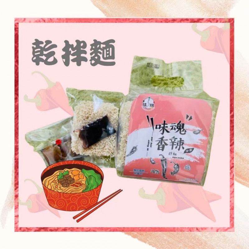 麵條係採自然根本單純的素材-特級粉心麵粉、食鹽經黃金比例製成,非油炸無漂白、無添加任何防腐劑,低溫長時間熟成之麵食,保留了天然的麥香與純粹的養分,搭配天然香辛調味料朝天椒及有「樹上蔬菜」之稱保健訴求極高的香椿秘製而成的香辣拌醬、超潤滑,方便又美味的香辣拌麵!