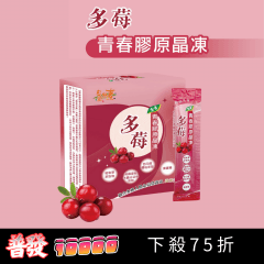 市售膠原蛋白絕大多數原料來自動物性成分為主,很少屬於全素的膠原蛋白商品,本項多莓青春膠原晶凍,雖原料內未有具體之膠原蛋白成分,唯因配方中專利昭和草萃取物及刺蘋婆樹木髓分泌物(雪燕),搭配含豐富維生素C的西印度櫻桃萃取,有助於促進膠原蛋白的形成及傷口癒合,具抗氧化作用。對於養顏美容、維持青春美麗能發揮一定的功效,本商品之推出對於素食的朋友為一大福音。